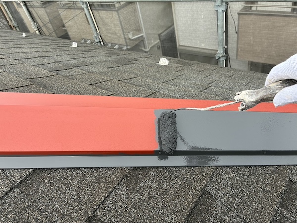 屋根の棟板金についても状態を確認し、補修・塗装を行いました。